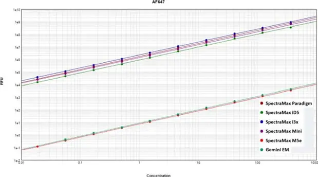 図7. SpectraMaxマイクロプレートリーダーで読み取ったAlexa Fluor 647の標準曲線