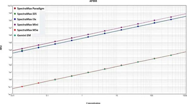 図5. SpectraMaxマイクロプレートリーダーで読み取ったAlexa Fluor 555の標準曲線